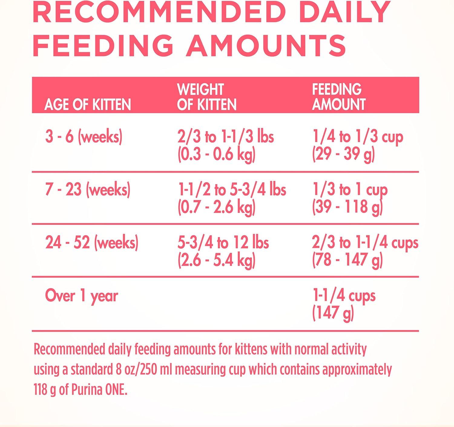 Give your kitten the nutrition she needs with Purina ONE +Plus Healthy Kitten Formula dry cat food. Real chicken is the number 1 ingredient in this high protein dry kitten food, which supports growing muscles. Purina ONE for kittens uses a SmartBlend of high-quality ingredients, plus DHA, a nutrient found in mothers' milk, to help with brain and vision development. This natural kitten food has added vitamins, minerals and nutrients and accents of real vegetables with no artificial flavors or preservatives. The crunchy cat food kibble has an enticing texture, which, along with added calcium, helps support strong teeth and healthy gums. Four antioxidant sources, including vitamins E and A, help provide immune support for cats. She gets the 100 percent complete and balanced nutrition she needs to stay strong and healthy in this kitten dry food. Combining nature and research and formulated by a veterinarian-recommended brand, Purina ONE +Plus cat and kitten food offers results you can see in your cat.