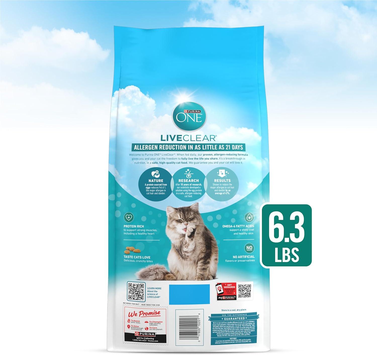 Purina ONE LiveClear Allergen-Reducing Cat Food Dry Formula with Real Chicken As The Number One Ingredient - 3 lb. Bag(6.3lb Bag (Pack of 1))