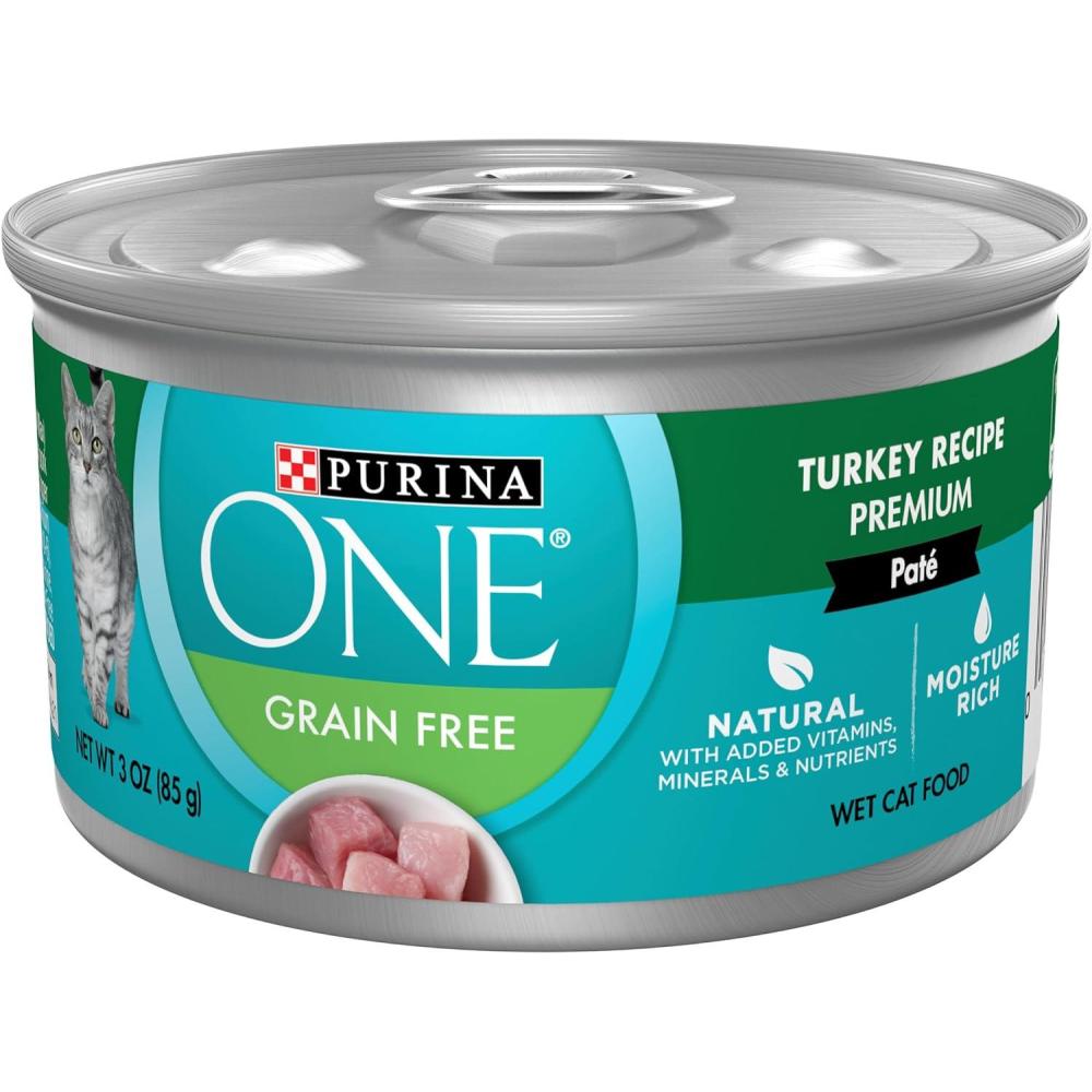 Share the poultry flavor your cat craves while giving her the nutrition she needs with Purina ONE Natural Grain-Free Pate Chicken Recipe cat food with added vitamins, minerals and nutrients. Providing purposeful nutrition for lifelong whole-body health, this wet food for cats features real chicken as the number one ingredient and offers high-quality protein to help support her strong muscles. Tender, delicate pate tempts her to the dish, and a savory gravy enhances the delicious flavor cats love. Keeping her healthy and active is important to you, and this soft cat food includes antioxidants to help support her immune system. Plus, the formula helps support her healthy skin and coat. We formulate this Purina ONE grain free wet cat food pate Chicken Recipe to feed cats of all ages, so it's an ideal canned cat food option for growing kittens as well as active adults.
