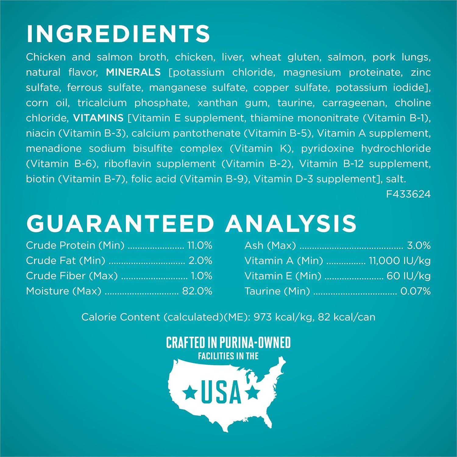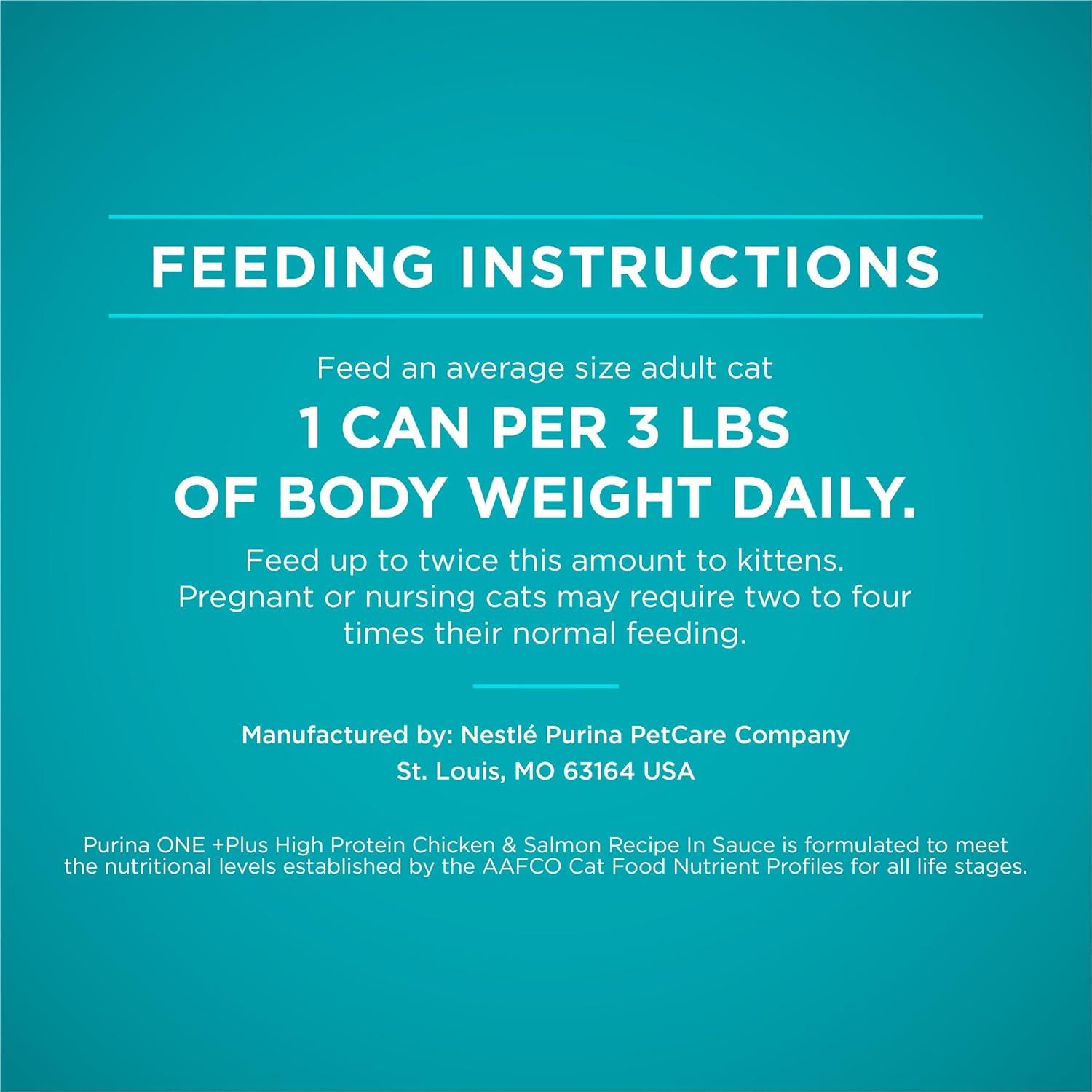 Take care of your favorite feline companion by feeding her the targeted nutrition found in Purina ONE Natural True Instinct Chicken and Salmon Recipe in Sauce wet cat food with added vitamins, minerals and nutrients. Real chicken and salmon combine in this cat wet food to provide her with high levels of protein to help support strong muscles and give her all the nutrition she needs for lifelong whole-body health. Created with 0 percent fillers and a taste cats love, this soft cat food also supports your cat's hydration and healthy skin and coat. Put her nutritional needs first by serving Purina ONE True Instinct Chicken and Salmon Recipe in Sauce high protein cat food. Every serving of this natural cat food wet formula with added vitamins, minerals and nutrients supports her optimal health both inside and out, giving you the confidence of knowing she has everything she needs to make it through the day.