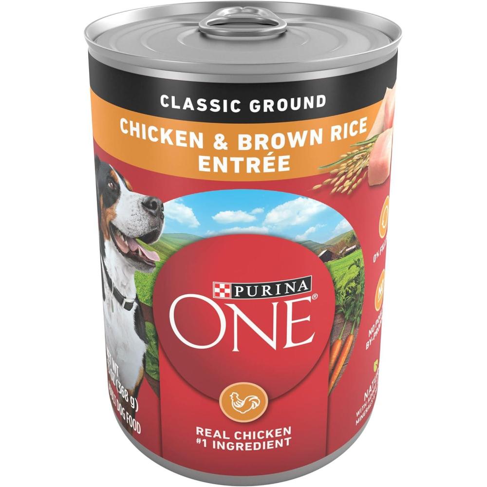 Entice your dog with the delicious flavors and tempting texture of Purina ONE +Plus Classic Ground Vibrant Maturity 7+ Turkey and Barley Entree adult wet dog food with added vitamins, minerals and nutrients. Real turkey delivers the savory poultry taste he loves, while oat meal and barley round out this pate wet dog food recipe for a mouthwatering finish. Each serving of this high protein dog food contains real poultry to support your older dog's strong muscles and is made with MCTs, or medium-chain triglycerides, to promote alertness and activity. With 0 percent fillers, every high-quality ingredient in this adult dog food for senior dogs has a purpose. The classic ground texture of our wet dog food for senior dogs give him something to sink his teeth into. Be confident he's getting 100 percent complete and balanced nutrition for adult dogs to help support his lifelong whole-body health, and give him a taste and texture he can get excited about with this Purina senior dog food.