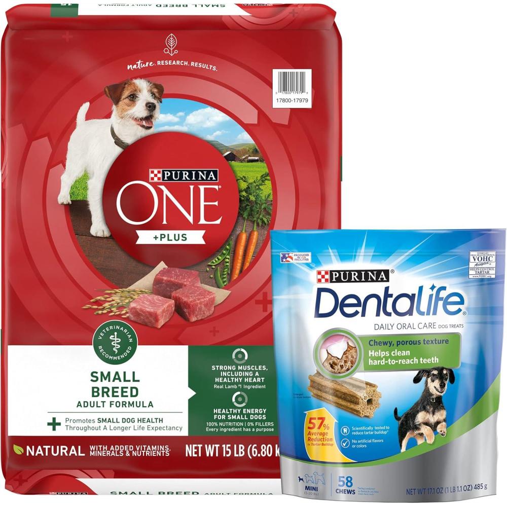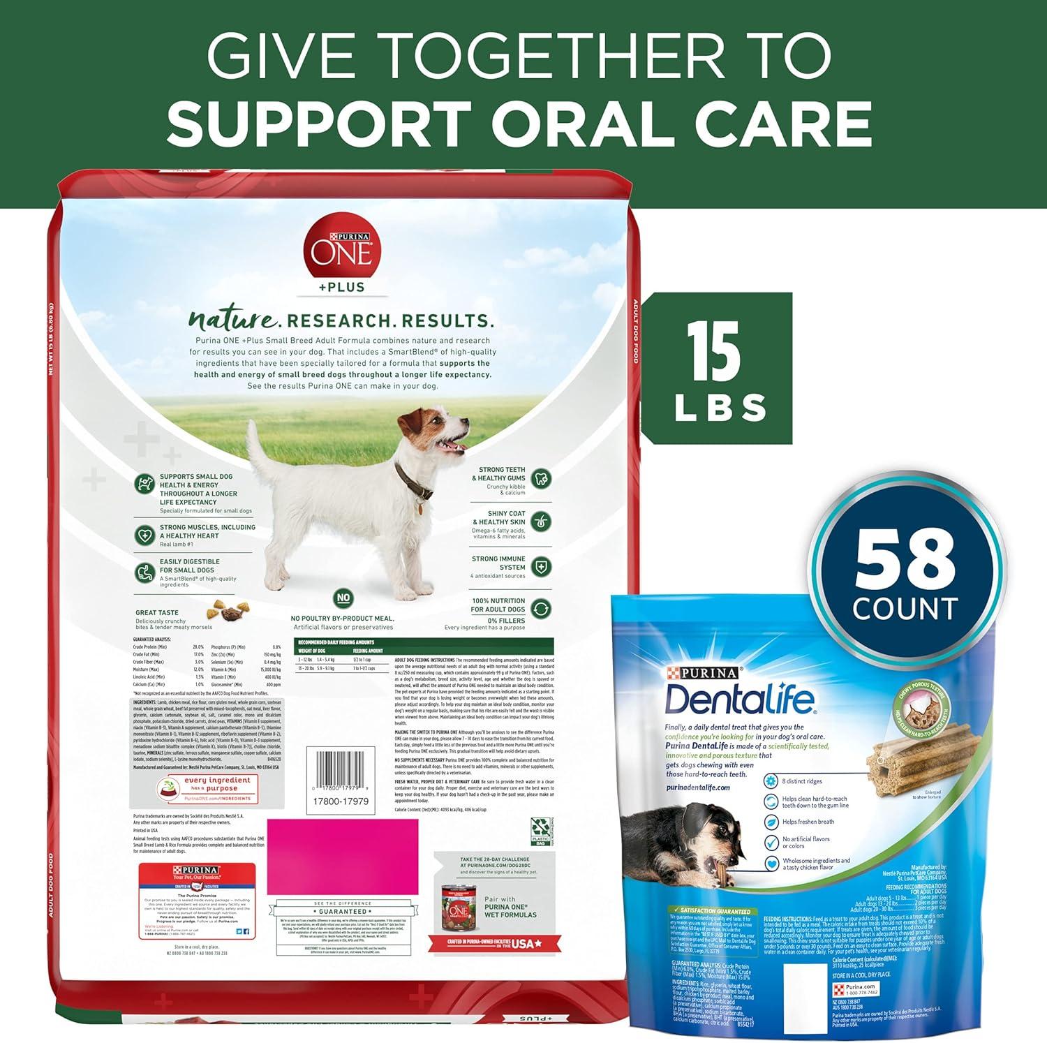 Ensure your small dog has the nutrition he needs with Purina ONE +Plus Natural Small Breed Lamb and Rice Formula With Added Vitamins, Minerals and Nutrients adult dry dog food. Real lamb is the first ingredient in this small dog food recipe, and we make it with 0 percent fillers, artificial flavors, preservatives and poultry by-product meal. Formulated to support the health and energy of active small dogs, this highly digestible dog food kibble offers a nutrient-dense formula with a blend of four antioxidant sources for immune support. Omega-6 fatty acids, vitamins and minerals in this Purina dry dog food for small dogs support his shiny coat and healthy skin. Plus, the crunchy kibble and calcium in our dog food for small breeds support strong teeth and healthy gums. With Purina ONE +Plus Natural Small Breed dog food, your dog gets 100 percent complete and balanced nutrition for adult dogs in a crunchy kibble format with meaty morsels and protein to support his strong muscles, including his heart.