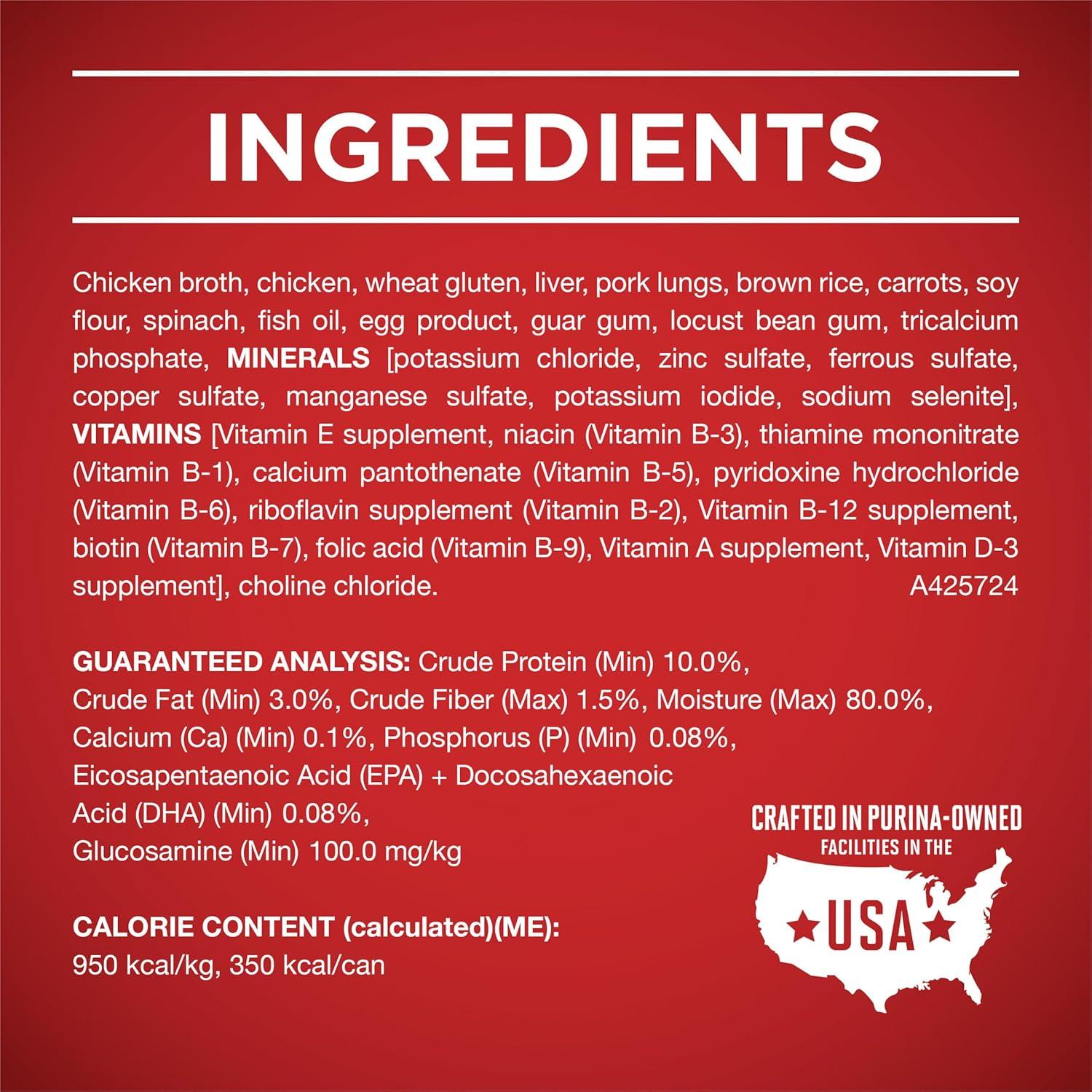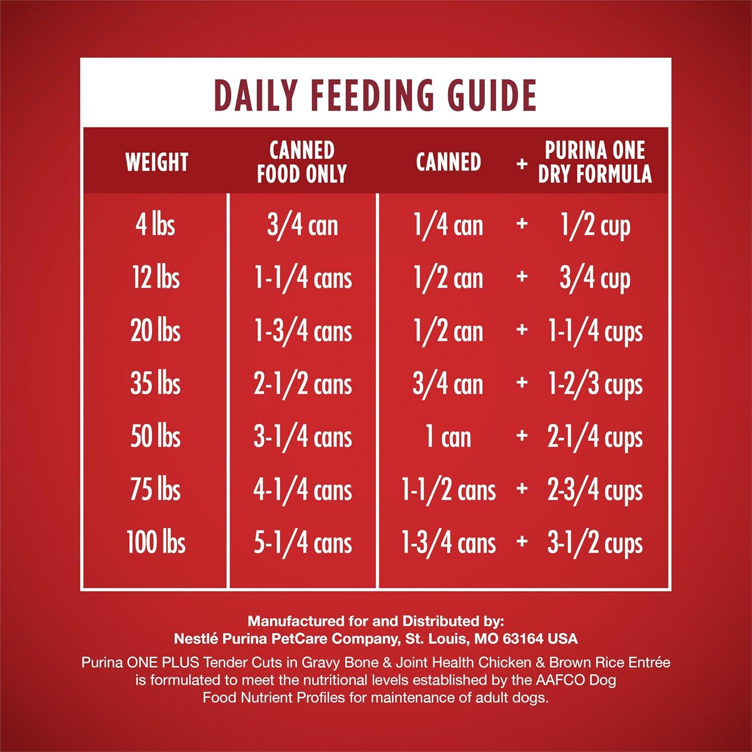Serve your dog a high-quality meal with ingredients proven to promote bone and joint health with Purina ONE Plus Tender Cuts in Gravy Bone and Joint Health Chicken and Brown Rice Entree Natural With Added Vitamins and Minerals Dog Food wet food for dogs. This soft dog food features real chicken, with no poultry byproducts, for a taste and texture that will keep your dog coming back meal after meal. Plus, added vitamins, minerals and nutrients help support his overall wellbeing. Each serving of this formula nourishes bone and joint health with a blend of calcium, phosphorus and omega-3-rich fish oil for bone health and mobility. With Purina ONE dog food you can be confident knowing your dog is getting 100 percent complete and balanced nutrition for adult dogs with 0 percent fillers, and no poultry byproduct meal, artificial flavors or preservatives, so every ingredient has a purpose. Fill your dog’s bowl every day with this Purina ONE wet dog food.